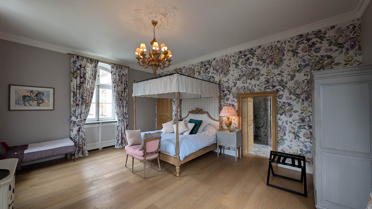La suite Grande Duchesse au Château de Berg est un chef-d'œuvre de luxe, offrant une fusion élégante de charme classique et de confort moderne. Cette chambre spacieuse de 33 m², ornée de motifs floraux et de meubles royaux, vous invite dans un monde de beauté raffinée. Les teintes douces et les draperies délicates créent une atmosphère de tranquillité, parfaite pour une escapade relaxante. Profitez du luxe d'une salle de bains privée, de la commodité du WiFi gratuit et de l'accès illimité aux espaces intérieurs opulents du château et au magnifique jardin à la française avec sa piscine accueillante.