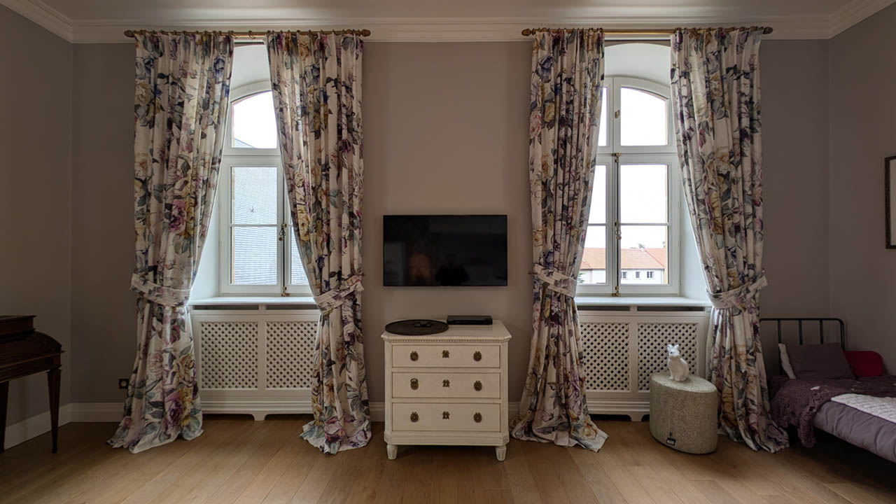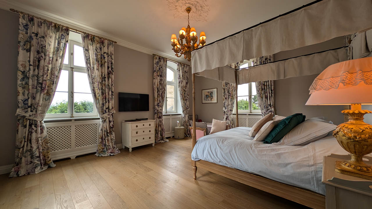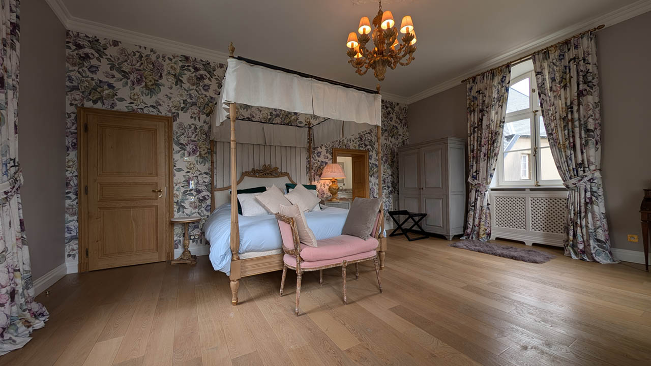 La suite Grande Duchesse au Château de Berg est un chef-d'œuvre de luxe, offrant une fusion élégante de charme classique et de confort moderne. Cette chambre spacieuse de 33 m², ornée de motifs floraux et de meubles royaux, vous invite dans un monde de beauté raffinée. Les teintes douces et les draperies délicates créent une atmosphère de tranquillité, parfaite pour une escapade relaxante. Profitez du luxe d'une salle de bains privée, de la commodité du WiFi gratuit et de l'accès illimité aux espaces intérieurs opulents du château et au magnifique jardin à la française avec sa piscine accueillante.