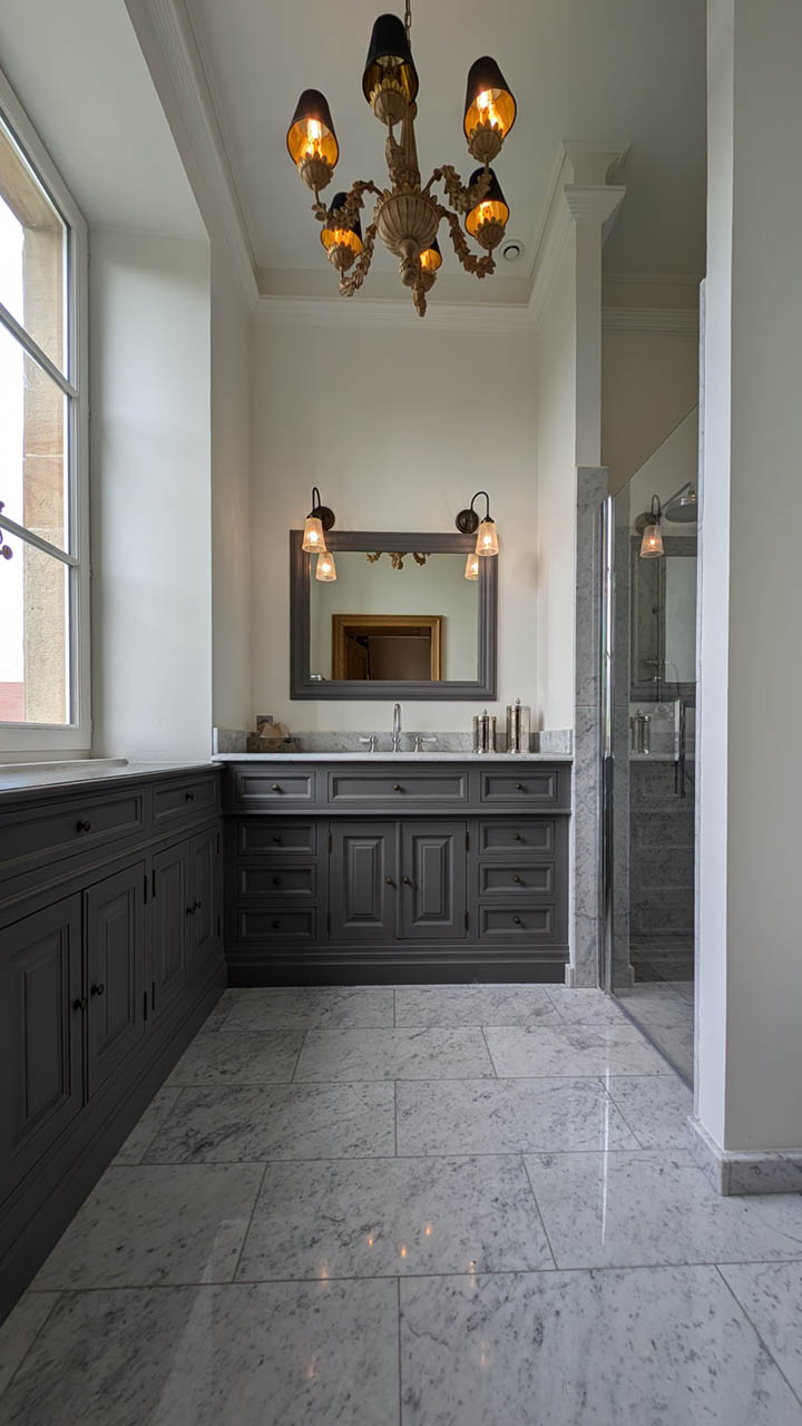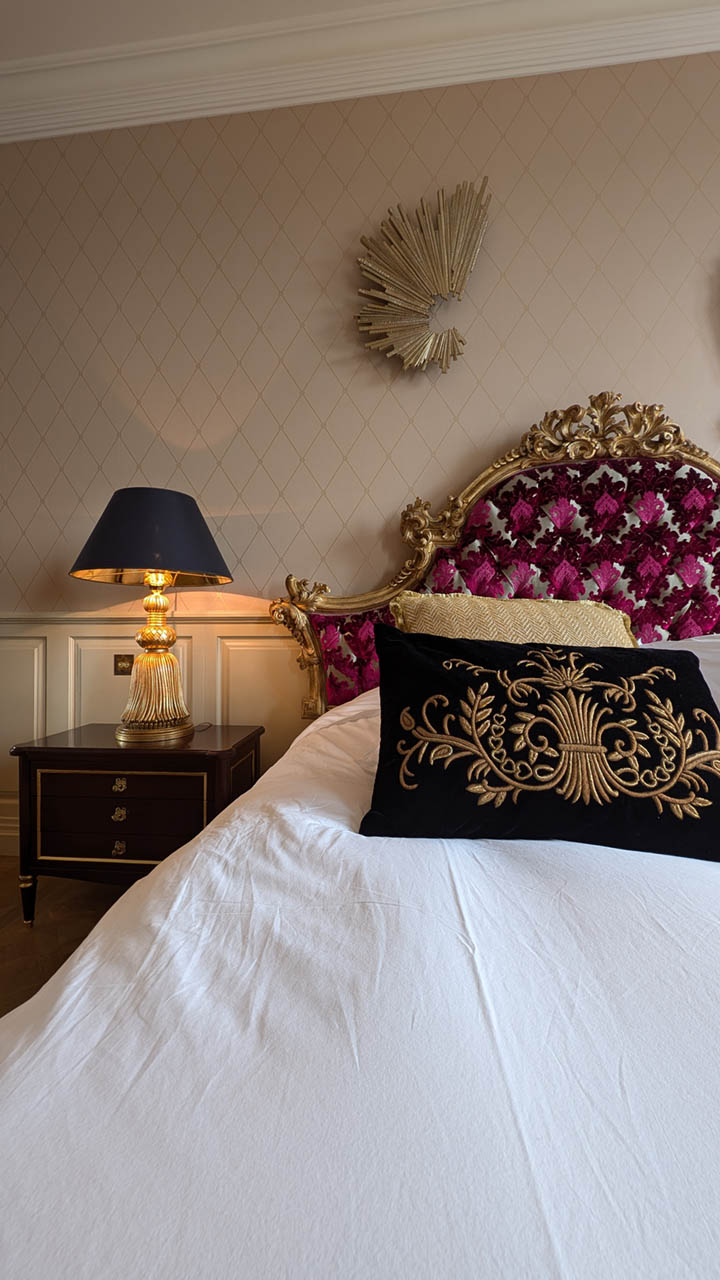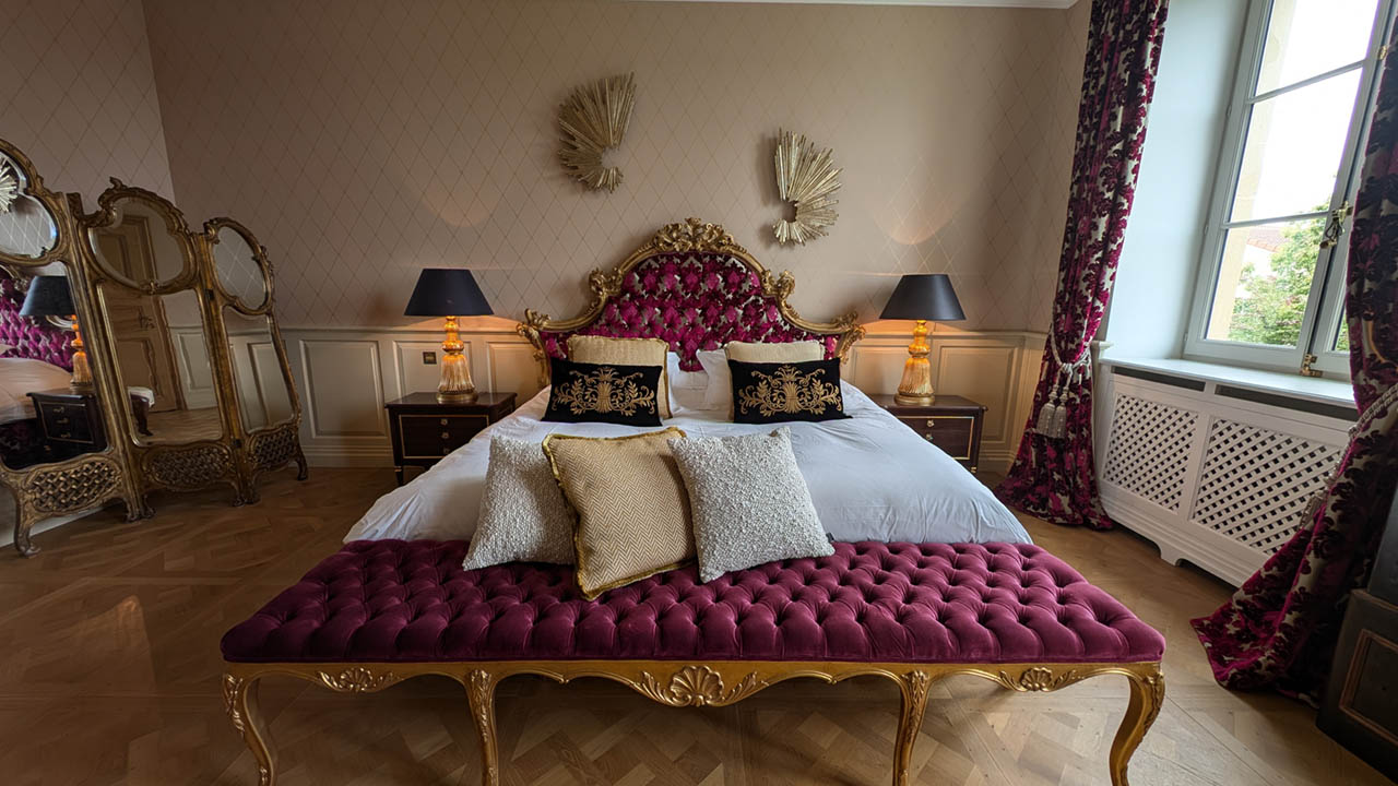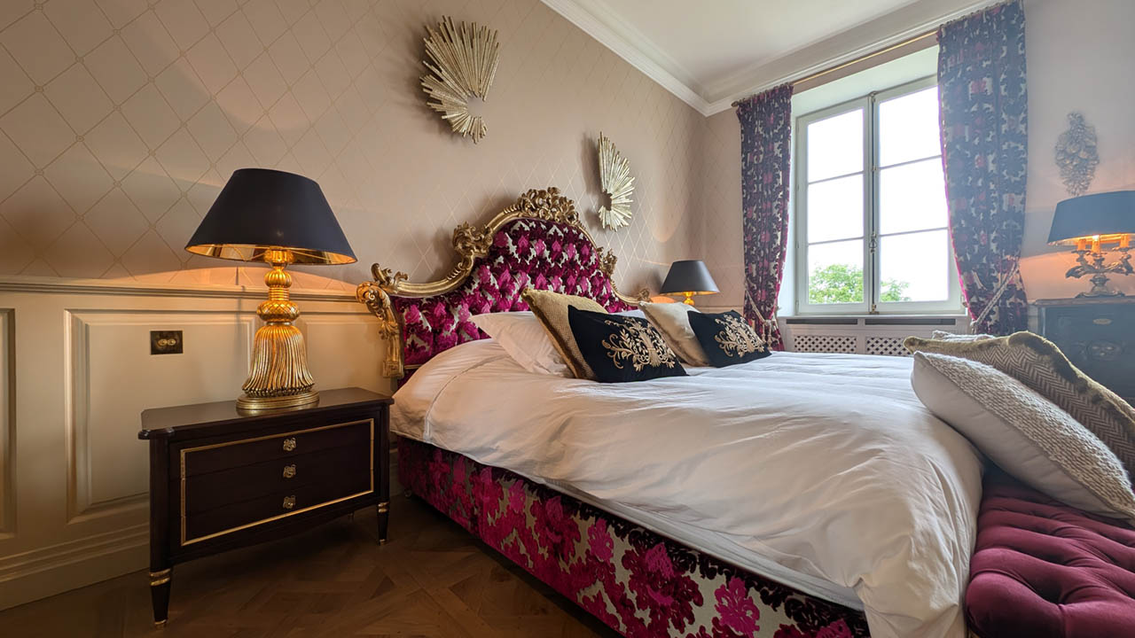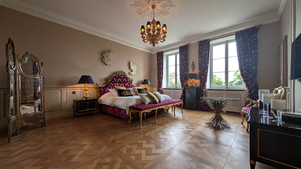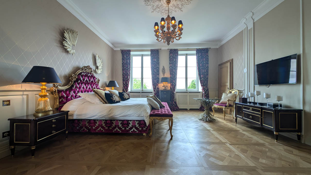 Entrez dans l'étreinte luxueuse de la Suite Impératrice, où l'opulence rencontre le confort. Cette chambre magnifiquement décorée de 30 m² offre une atmosphère royale avec son lit richement orné, son mobilier élégant et ses vues imprenables sur le jardin à la française soigneusement entretenu et la piscine scintillante. La suite harmonise grandeur classique et commodités modernes, garantissant un séjour à la fois indulgent et relaxant. Que vous profitiez de l'ambiance de la chambre ou que vous exploriez les environs sereins, la Suite Impératrice promet une expérience inoubliable au Château de Berg.